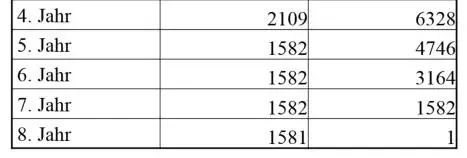 Damit ergibt sich für die acht Jahre die folgende Tabelle.