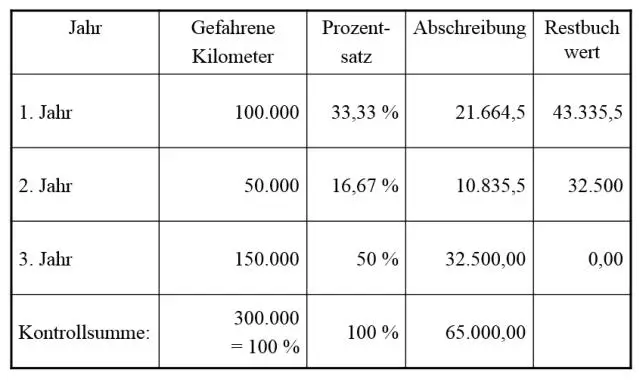 Die Berechnung der daraus resultierenden Abschreibungsbeträge ist sehr einfach. Die zu erwartende Gesamtleistung beträgt 100 %. Die ermittelte Teilleistung wird zur Gesamtleitung ins Verhältnis gesetzt. Heraus kommt ein Prozentsatz, der auf die Anschaffungskosten angewendet wird. So wird das jedes Wirtschaftsjahr gemacht, bis die abgegebene Leistung 100 % erreicht hat.